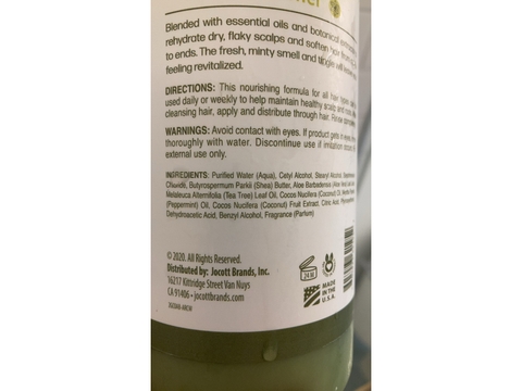 Được pha trộn với các loại tinh dầu và chiết xuất thực vật để bù nước cho da đầu khô, bong tróc và làm mềm tóc từ gốc đến ngọn. Mùi bạc hà tươi mát sẽ khiến mái tóc bạn hồi sinh.